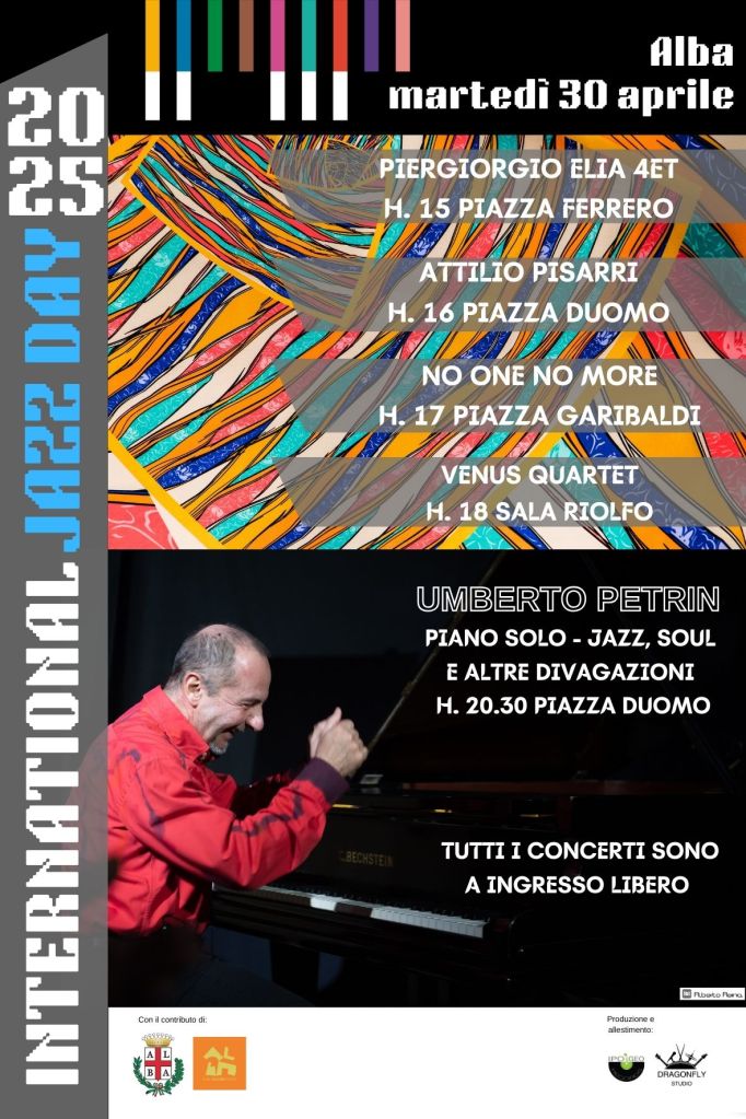 Evento serale con lo strepitoso concerto in piano solo di Umberto Petrin, artista che ha inciso per ECM, e un itinerario di concerti pomeridiani per l’International Jazz Day ad Alba